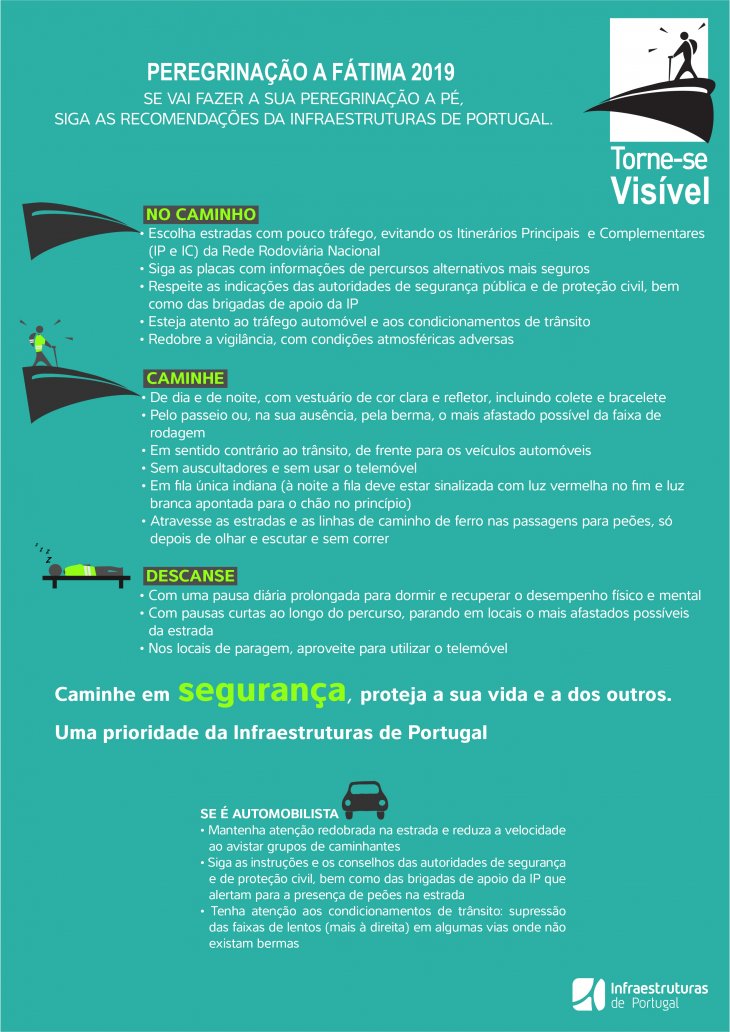 A IP recomenda o cumprimento das regras de segurança e um cuidado redobrado nos dias da celebração do centenário de Fátima, desejando a todos uma Peregrinação em Segurança.